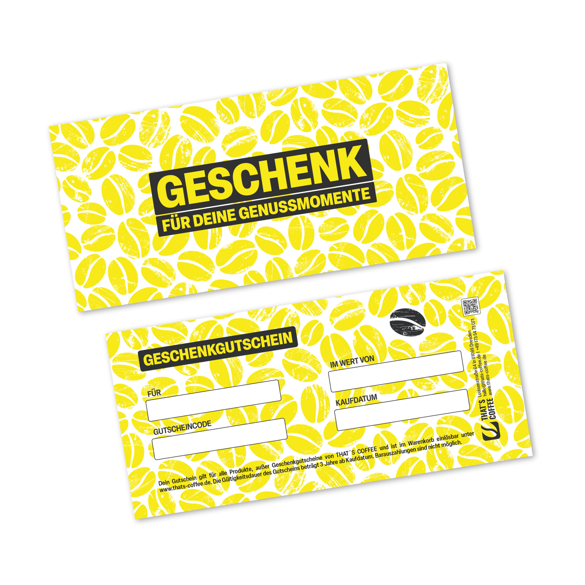 Then the THAT'S COFFEE gift voucher card is the perfect present for your loved ones. Choose between five variants - from 10 to 100 euros . You will receive the voucher code by email after purchase, and the gift voucher card will be sent to you by post to fill out.